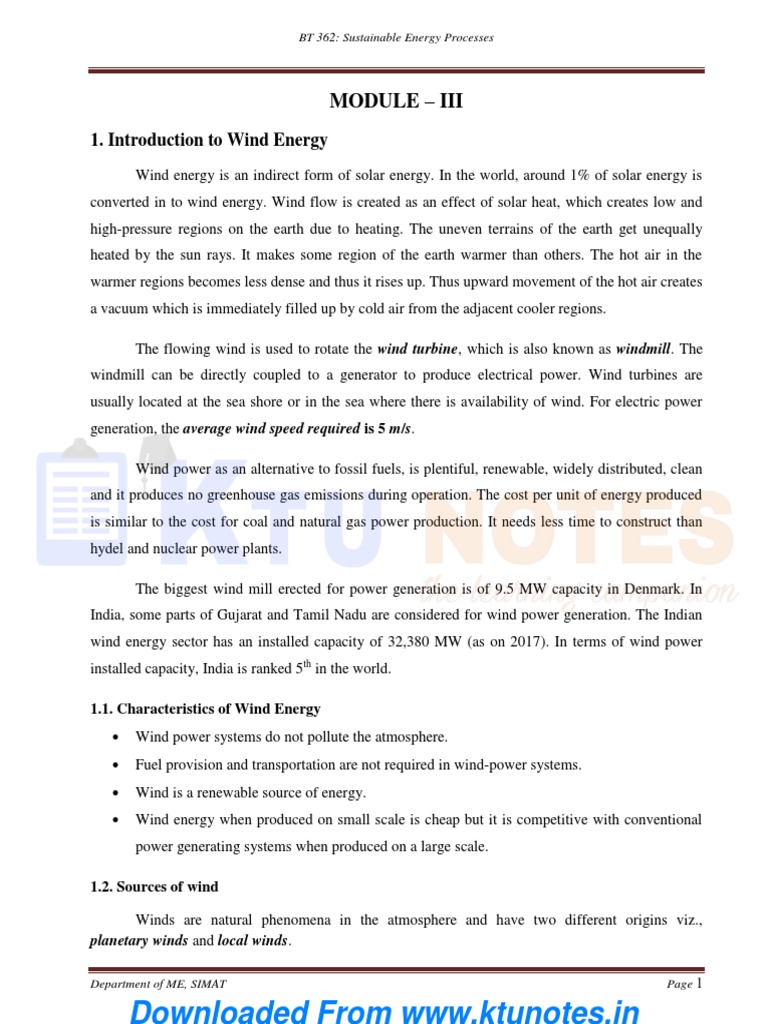 Module 3 Sep Ktunotes In 1 Wind Turbine Wind Power