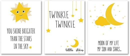 Amazon Com Dfsdg Yellow Star Moon Canvas Painting Nursery Baby Room Wall Art For Boy Girl Decoraiton Picture Bedroom Poster Decor 40x60cmx3 Pcs No Frame Home Kitchen